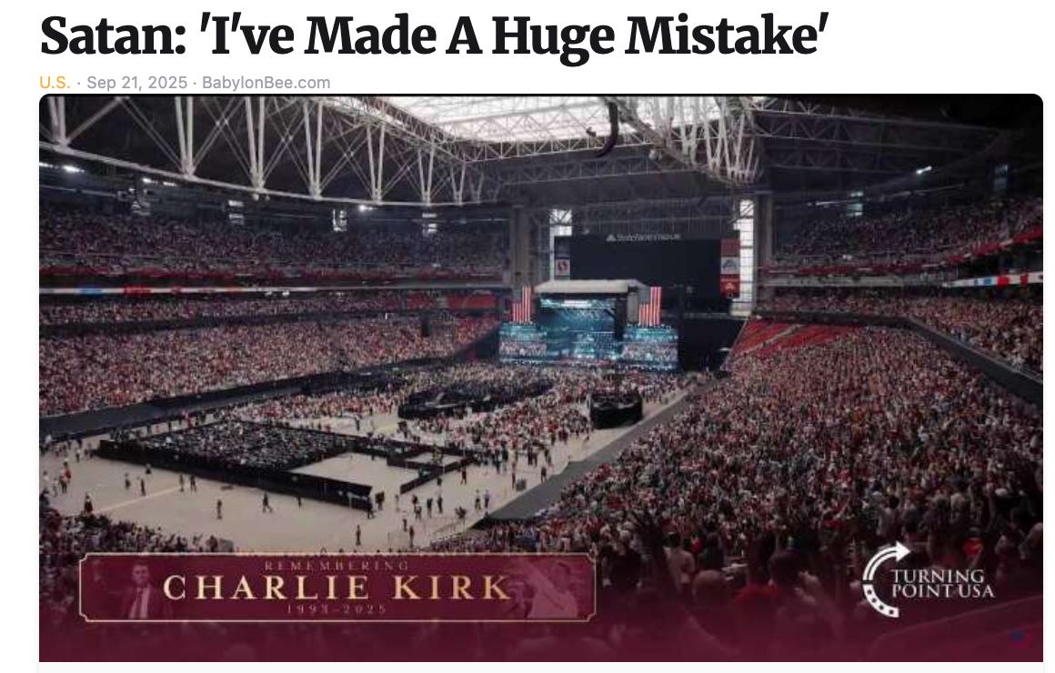 And the Babylon Bee, as is their wont these days, can't decide if they want to do satire or straight-up reporting.